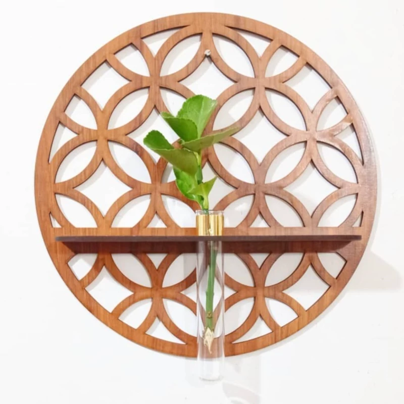 گلدان دیواری قلمه زنی چوبی همراه با شیشه