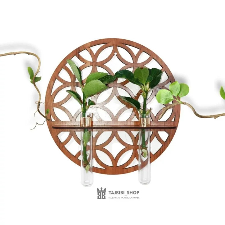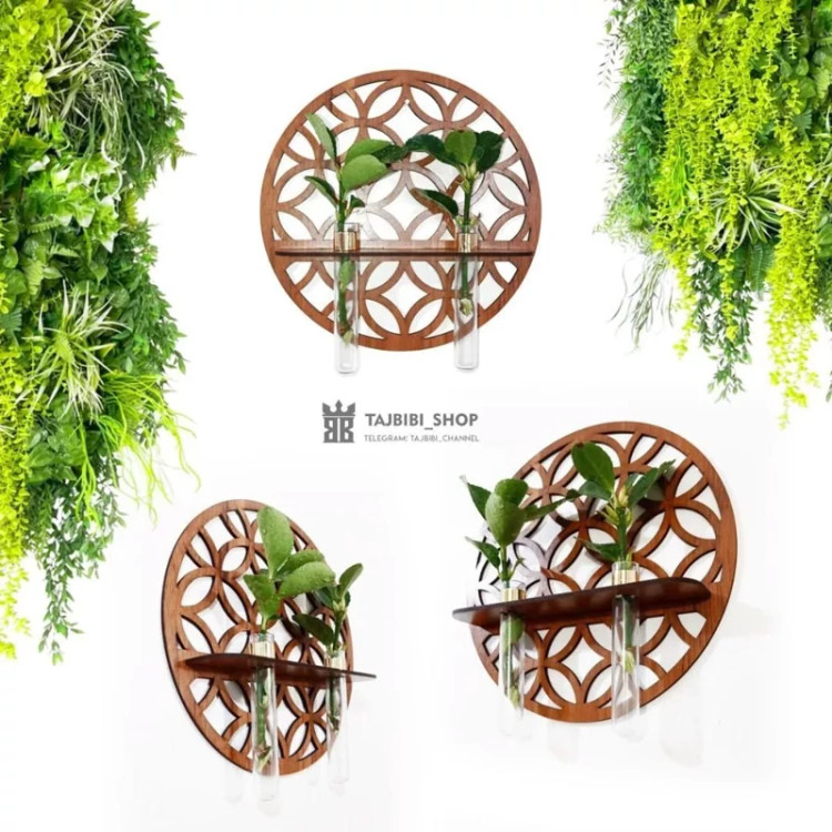 گلدان دیواری قلمه زنی چوبی همراه با شیشه