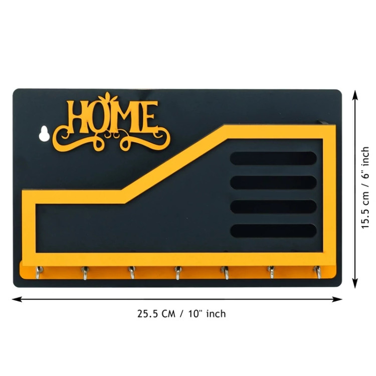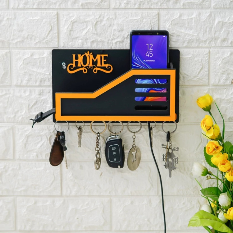 جاکلیدی دیواری فانتزی با جای موبایل طرح HOME نارنجی مشکی