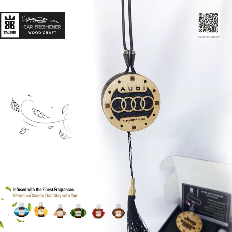 خوشبوکننده چوبی لاکچری آویز خودرو مدل audi | با رایحههای پرفروش و طراحی مخصوص آینه وسط
