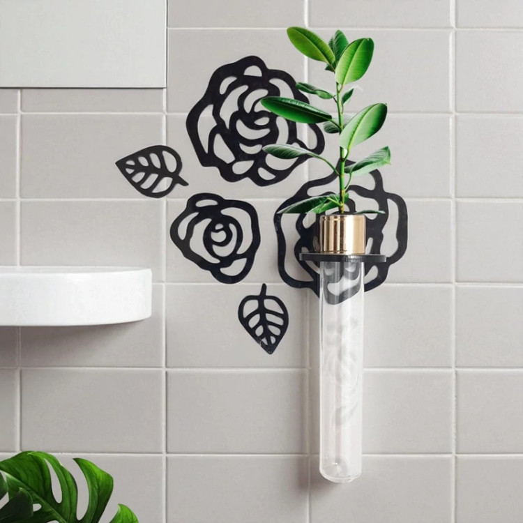 گلجای دیواری پلکسی پشت چسب دار ضدآب مدل گل رز به همراه لوله شیشه ای