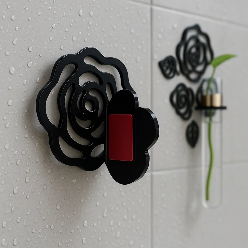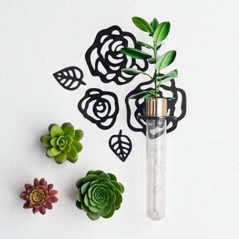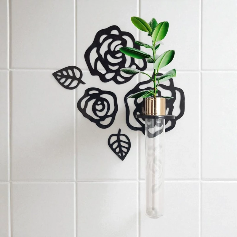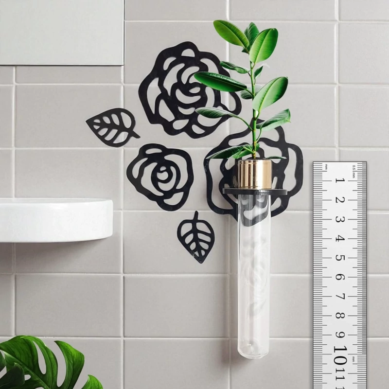 گلجای دیواری پلکسی پشت چسب دار ضدآب مدل گل رز به همراه لوله شیشه ای