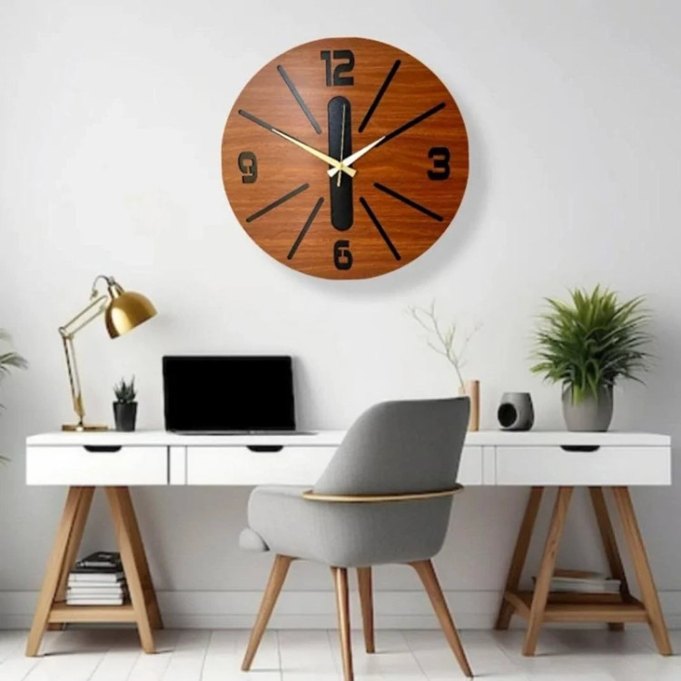 ساعت دیواری مدرن چوبی آرامگرد قطر 45