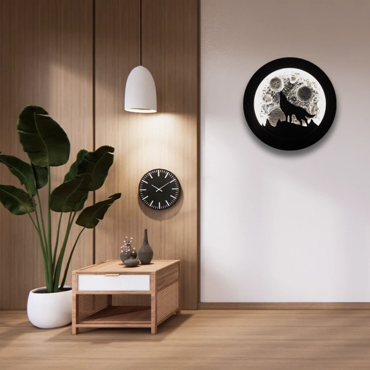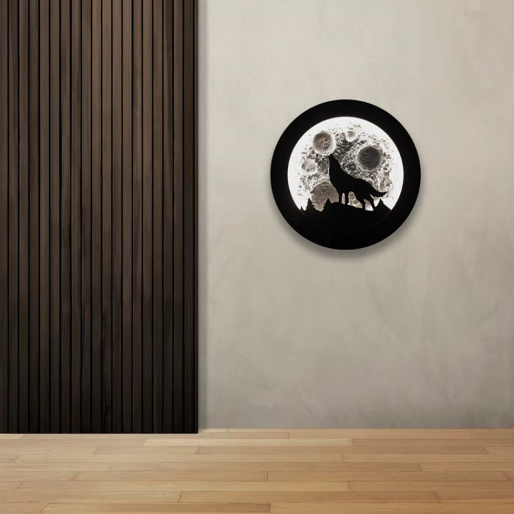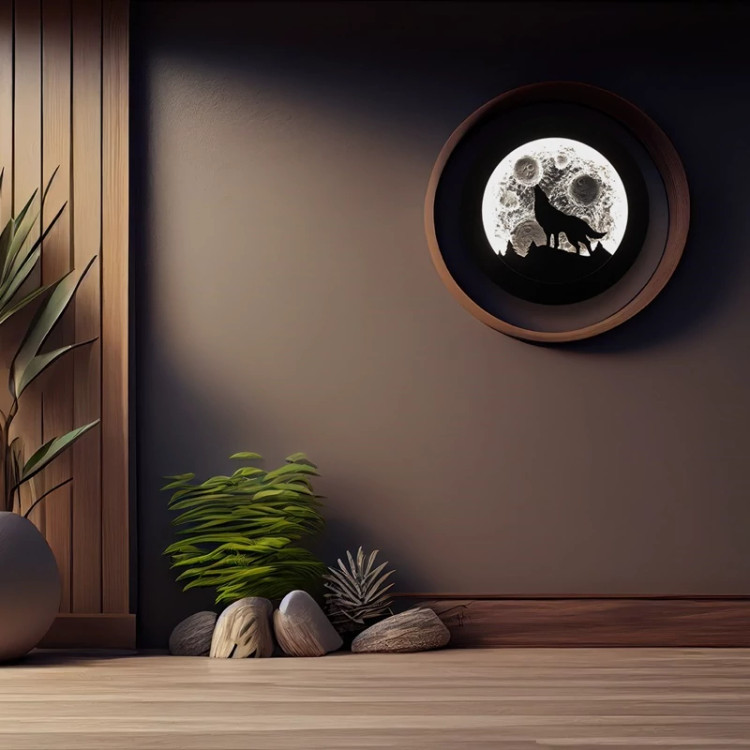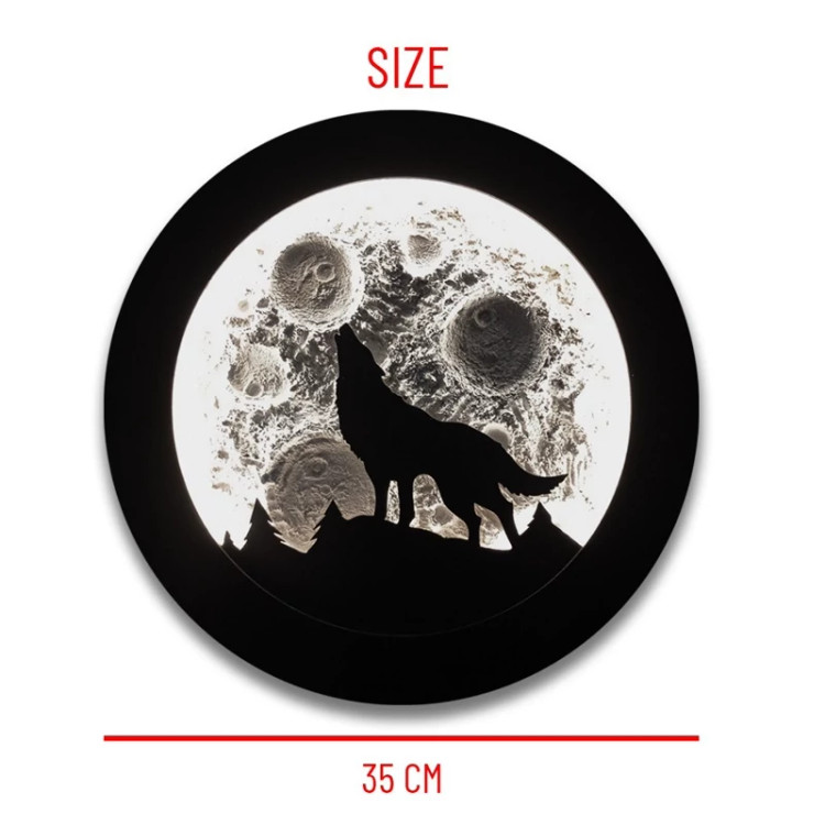 تابلو ماه گرگ نور نچرال قطر 35 سانت محصول بی نظیر و با کیفیت هنر زیبای دست استفاده دکوری و چراغ خواب نور با نور نچرال مناسب هدیه این محصول با نور 12 ولت تغذیه میشه و سوکت جهت اتصال آدابتور را دارد. این محصول بدون اداپتور میباشد