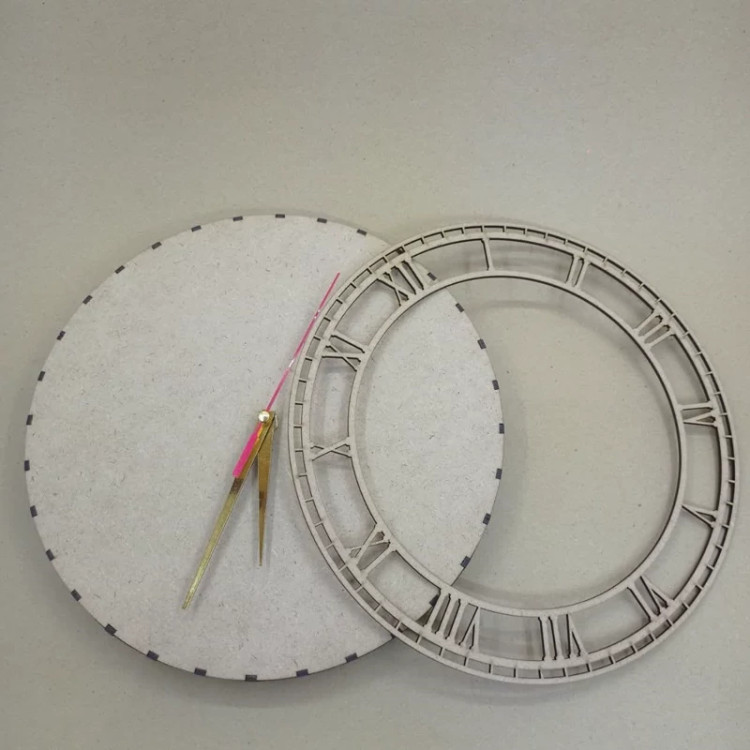پشت ساعت هم جای موتور ساعت داره و هم جای آویز ساعت و بیس مطابق ویدیو دو تکه میباشد بیس اعداد ساعت رو روی ساعت نمیچسبونیم که خودتون اول به دلخواه رنگ کنید و رزین بریزید بعد اعداد رو بچسبانید.