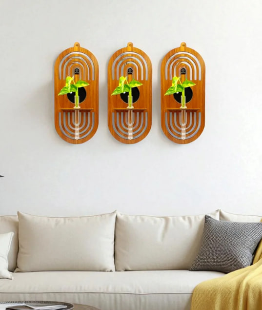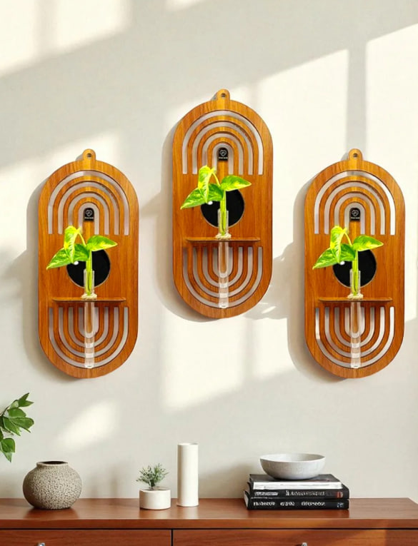 این محصول فقط یک گلدان دیواری نیست؛ یک المان دکوراتیو هنری همراه با کاربری گیاهی است. ترکیب آینه، فرم گنبدی، شیشه قلمهزنی و چیدمان چندتایی باعث میشود دیوار شما تبدیل به یک نقطه کانونی چشمگیر شود.