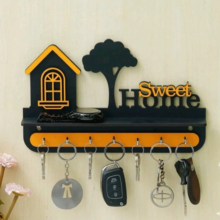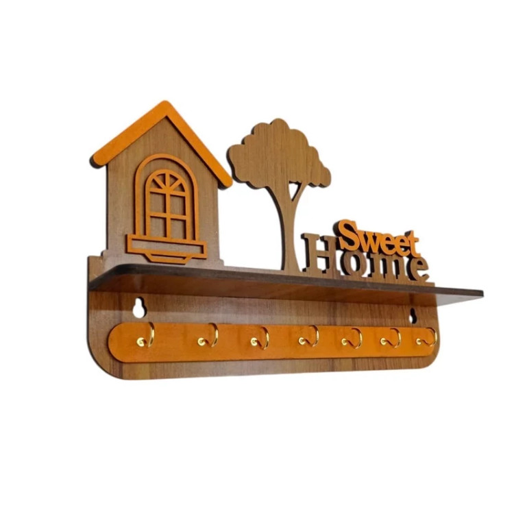 ✅ طراحی فانتزی و دکوراتیو با طرح خانه، درخت و نوشته Sweet Home ✅ ساخته شده از MDF با روکش رنگی با کیفیت و ماندگار ✅ دارای 7 قلاب فلزی مقاوم با رنگ طلایی براق ✅ دارای طاقچه کاربردی برای قرار دادن وسایلی مثل موبایل، عینک یا وسایل کوچک ✅ ترکیب رنگ مشکی و زرد چشمنواز، مناسب برای انواع دکوراسیون ✅ ساخت دقیق با دستگاه برش لیزر – کاری از مجموعه هنری تاج بیبی ✅ نصب آسان روی دیوار با پیچ یا چسب دوطرفه قوی (بسته به ترجیح مشتری)