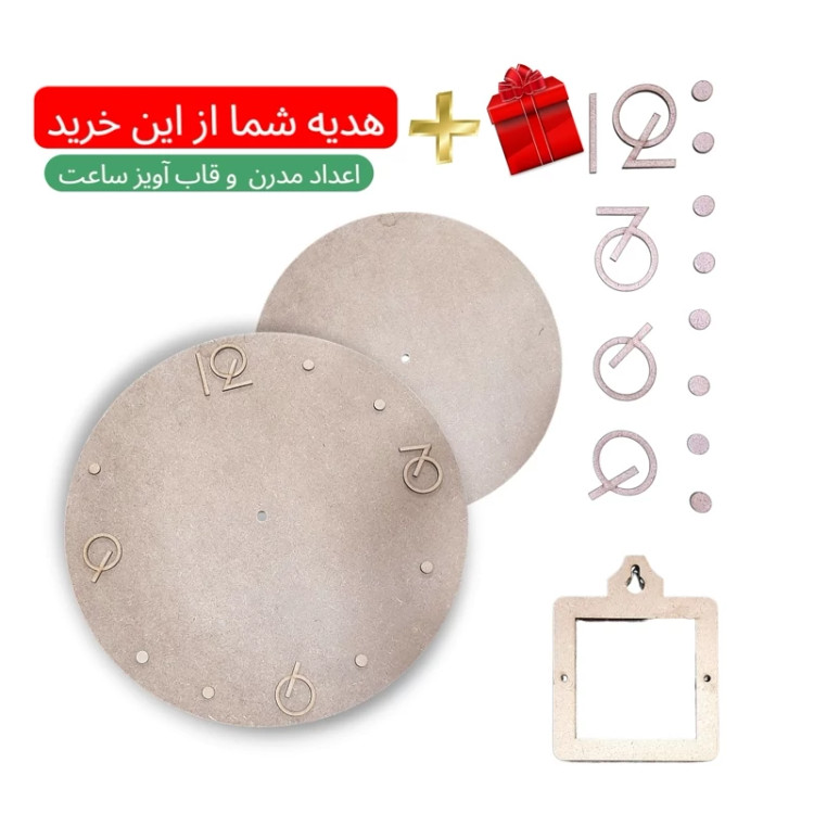بیس ساعت خام MDF با ضخامت 8 میل همراه با اعداد هدیه