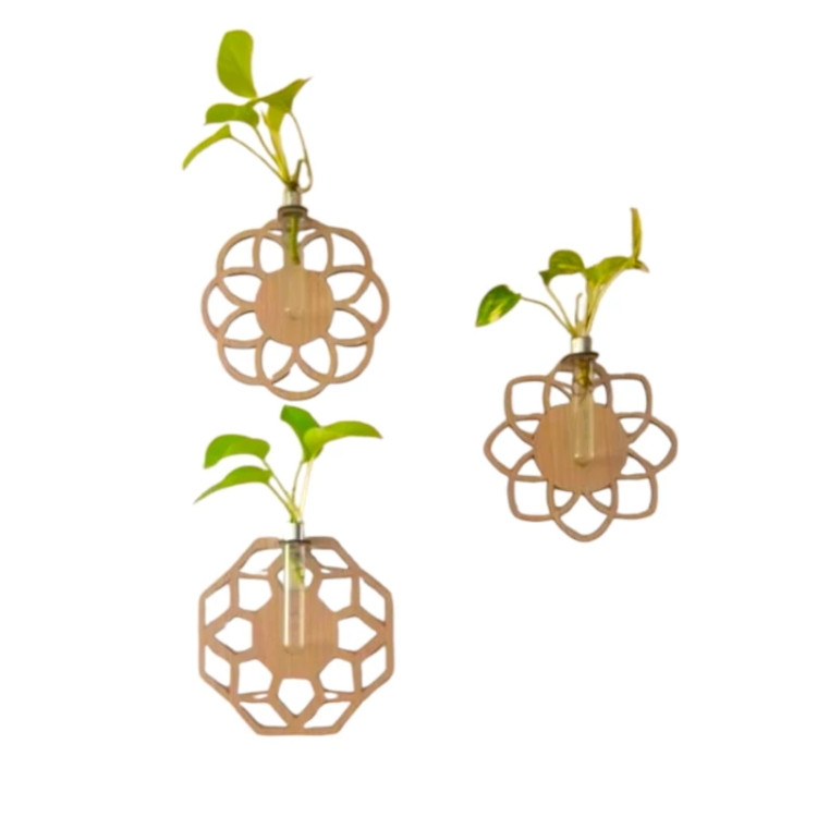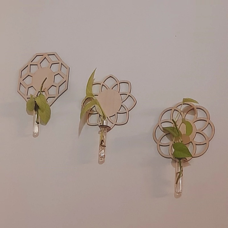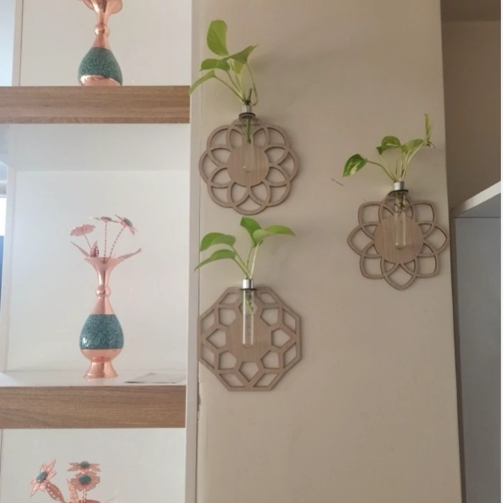 این محصول ترند و زیبا میتواند جلوه خاصی به نمای دیوار شما ببخشد همچنین با چسباندن روی ترموال ترمووود و ماربل شیت بسیار زیبا دیده میشود. ابعاد گلدان های دیواری 15*15 سانتیمتر ابعاد شیشه های قلمه زنی 100*16 میلیمتر 🌱این محصول برای جوانه زنی و قلمهزنی گیاه به صورت دیواری , روی دیوار نصب میشود و علاوه بر زیبایی جهت قلمهزنی گیاهان آپارتمانی استفاده میشود زیبایی طرح چوب و همچنین سبزی گیاه یک جلوه خاص به منزل و محل کار شما میبخشد. 🌱این محصول بسیار با کیفیت بوده و شما با خیال راحت میتوانید آن را در هر مکانی به سادگی نصب کنید نصب آسان آن فقط با کندن چسب پشت و نصب روی سطح تمیز بدون گرد و غبار.