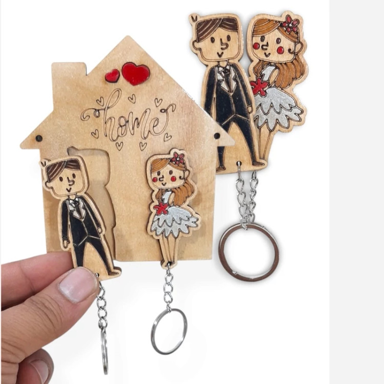 جاکلیدی چوبی طرح زوج عاشق هدیه و دکور