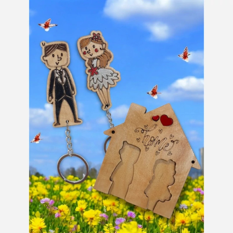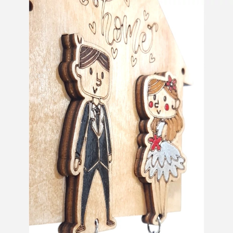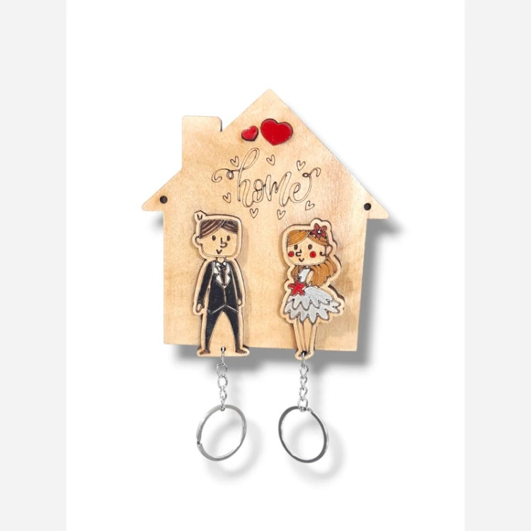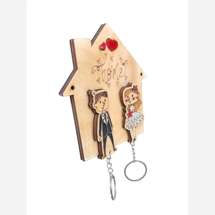 جاکلیدی چوبی طرح زوج عاشق 👩❤️👨 | هدیه خاص برای زوجها و دکور رمانتیک خانه