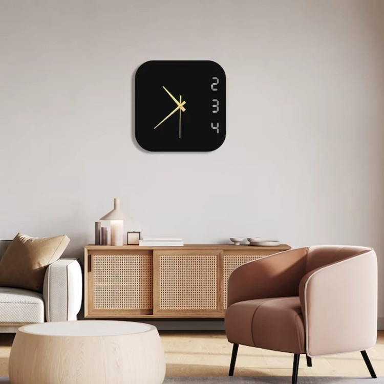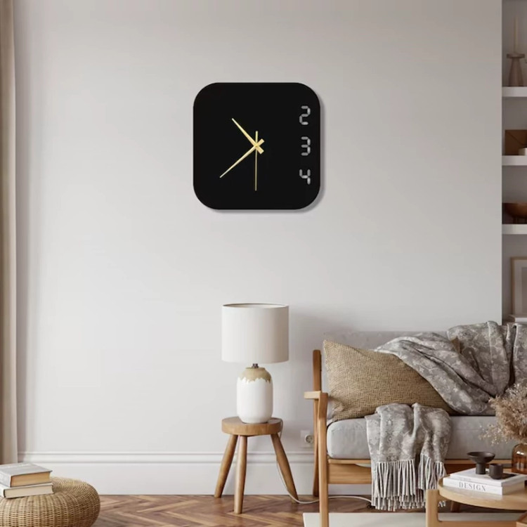 ساعت دیواری مربعی دور گرد مشکی