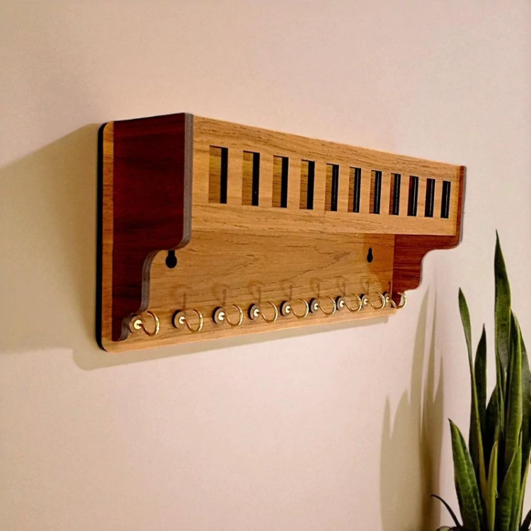 🔹 ویژگیهای محصول: ✅ دارای 9 قلاب فلزی با آبکاری کروم براق – بسیار مقاوم و کاربردی ✅ طراحی خاص و مدرن با رنگبندی جذاب (قابل سفارش با رنگ دلخواه) ✅ دارای محفظه مخصوص موبایل، کنترل، عینک، شارژر و وسایل کوچک ✅ مناسب برای خانوادههای پرجمعیت یا مکانهایی با کلیدهای زیاد ✅ ساخته شده از MDF با کیفیت و روکش مقاوم در برابر گرد و غبار ✅ دارای شیار مخصوص برای عبور کابل شارژ ✅ نصب آسان با پیچ یا چسب دوطرفه (بسته به نوع دیوار و انتخاب مشتری) ✅ طراحی و تولید با ظرافت توسط تیم tajbibi – قابل استفاده دکوری و کاربردی