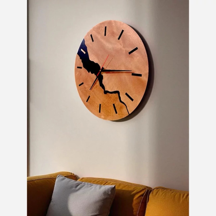 ساعت دیواری مینیمال چوبی با قطر 45 سانتیمتر، ترکیبی از هنر و طبیعت را به دیوارهای شما میآورد. این ساعت با طراحی منحصر به فرد و الگوی چوبی تیره و روشن که شبیه به نقشههای جغرافیایی یا شکافهای تکتونیکی است، جلوهای خاص به فضای شما میبخشد. عقربههای باریک و مشکی آن به زیبایی بر روی زمینه چوبی خودنمایی میکنند.با خرید این ساعت دیواری مینیمال چوبی، شما از مزایای زیر بهرهمند خواهید شد: کیفیت بالا: استفاده از چوب با کیفیت بالا و ساخت دقیق، تضمین میکند که این ساعت دوام و ماندگاری بالایی داشته باشد. طراحی مینیمال و مدرن: این ساعت با طراحی مینیمال و مدرن خود، به راحتی با هر سبک دکوراسیونی هماهنگ میشود و به فضای شما جلوهای شیک و مدرن میبخشد. کارکرد بیصدا: این ساعت با مکانیزم بیصدا، آرامش و سکوت فضای شما را حفظ میکند و هیچ گونه صدای تیک تاکی ایجاد نمیکند (Quartz clock). هدیهای خاص: این ساعت میتواند یک هدیه عالی و منحصر به فرد برای دوستان و خانواده باشد که همیشه به یادگار خواهد ماند. افزایش ارزش فضا: با اضافه کردن این ساعت به دکوراسیون خود، ارزش و جذابیت فضای خود را افزایش میدهید.